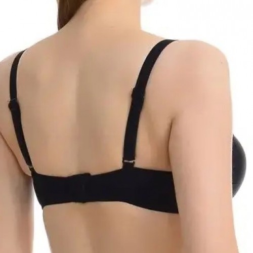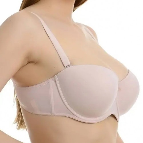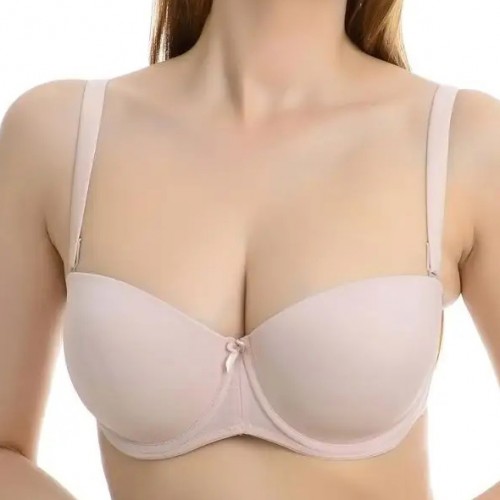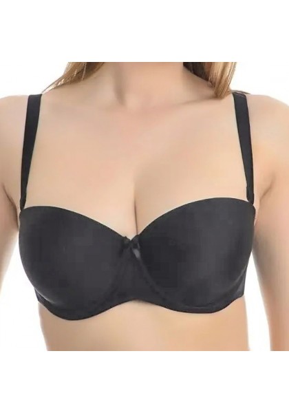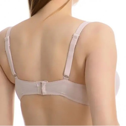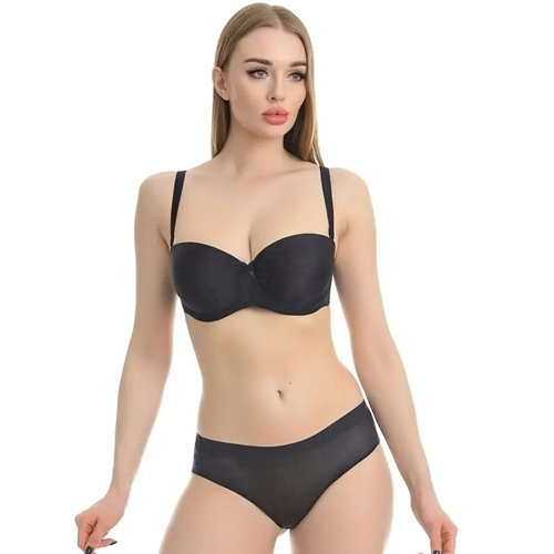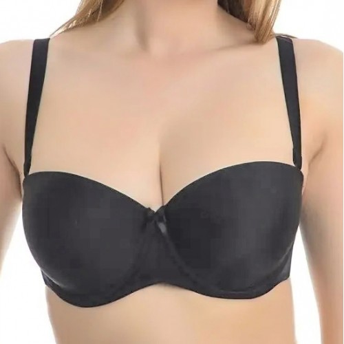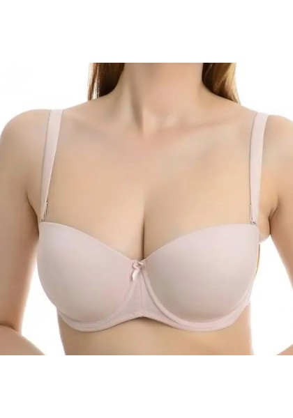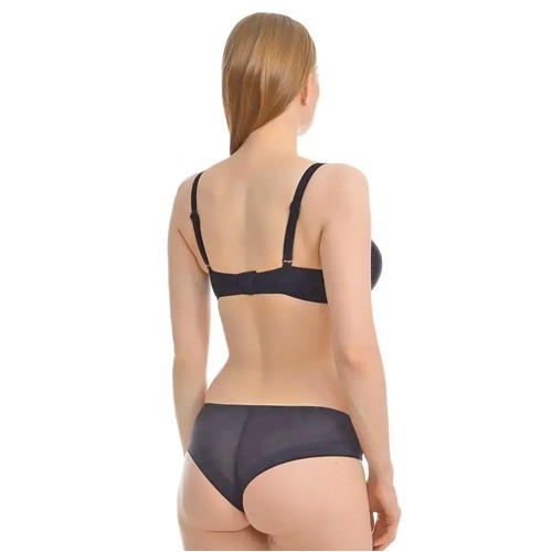 Бюстгальтер - балконет из эластичного полотна, с формованной чашкой, на каркасах. Съемные бретели выполнены из основного полотна по термоклеевой технологии. Все срезы бюстгальтера обработаны эластичной отделочной лентой. Застежка сзади на крючки и петли. Отделка бантик.