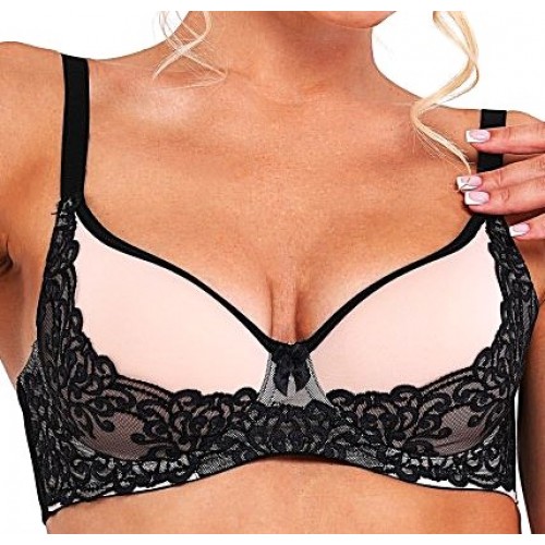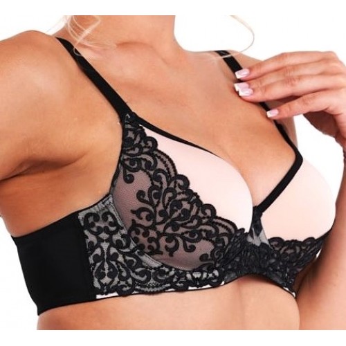 Элегантный бюстгальтер из эластичного полотна и кружева с формованной чашкой из материала SPACER, на каркасах.