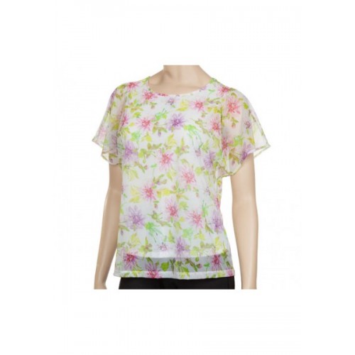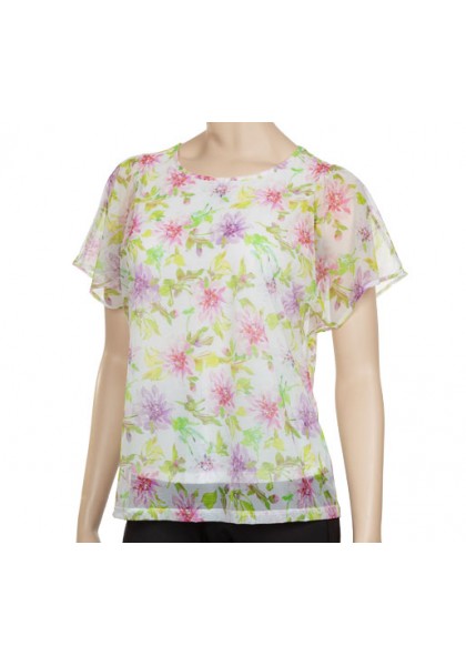 в яркой гамме из сеточки. Легкий, струящийся фасон. Рукав спущенный,