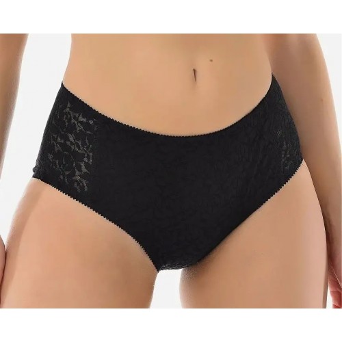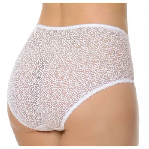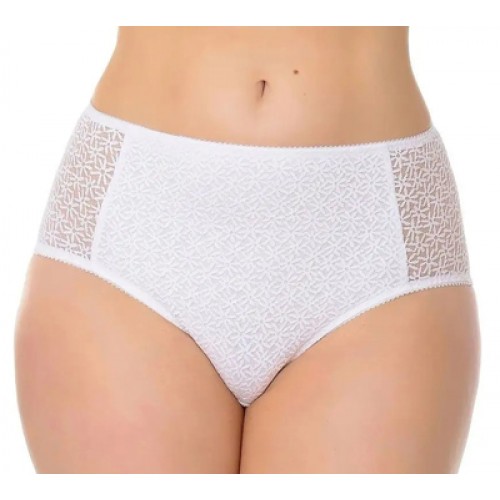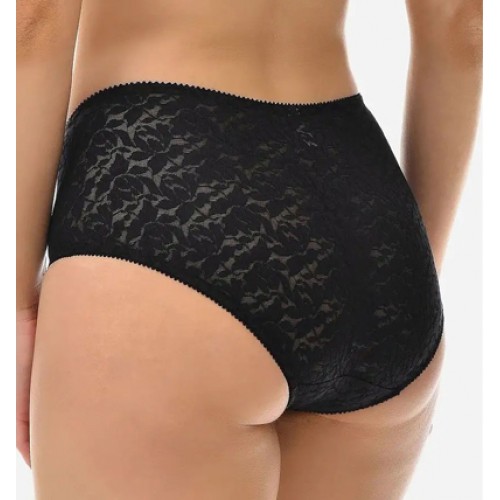 Утягивающие, трусы из кружевного эластичного полотна. Передняя часть - с дополнительным усилением из хлопчатобумажного трикотажного полотна, мягко утягивает живот. Ластовица - из хлопчатобумажного полотна. Все срезы трусов обработаны эластичной лентой.