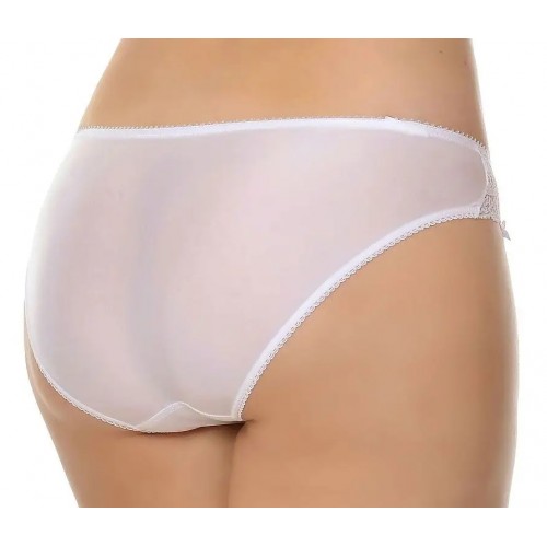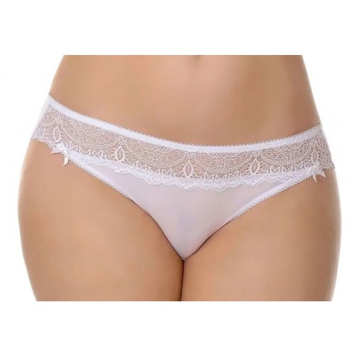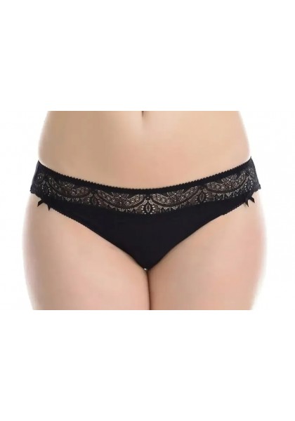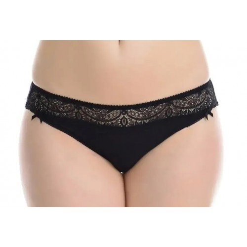 посадкой из эластичного полотна, с декоративной кружевной вставкой на передней детали. Кружевная вставка делает это изделие более женственным. Срезы трусов обработаны эластичной