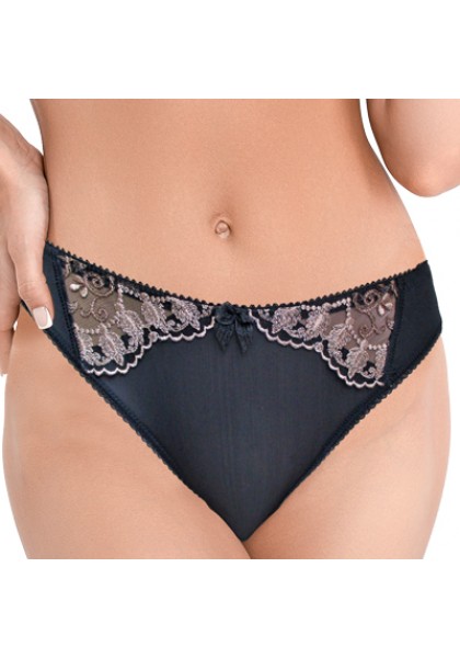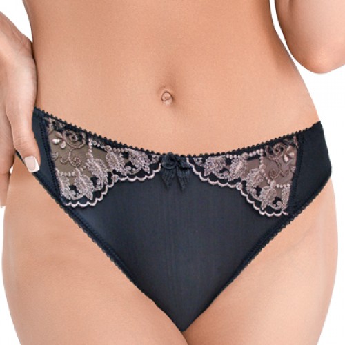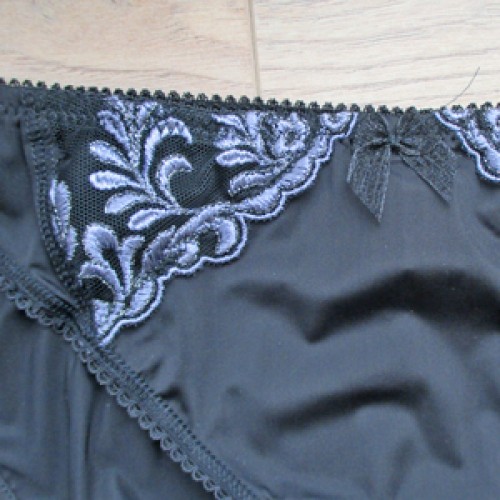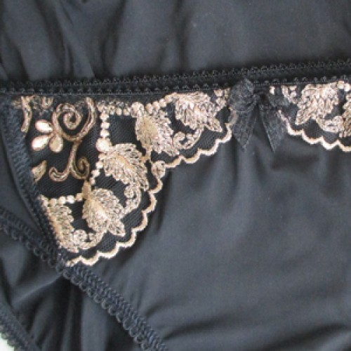 низкой посадкой. Впереди декоративные кружевные вставки. Верхние и нижние срезы обработаны узкой эластичной тесьмой.