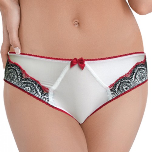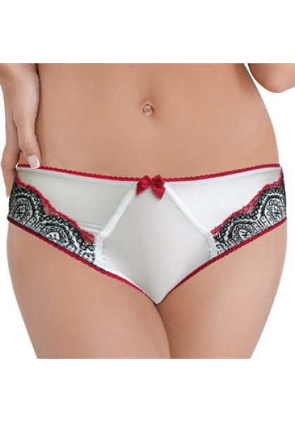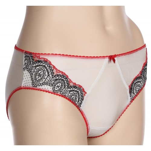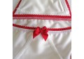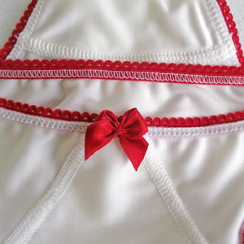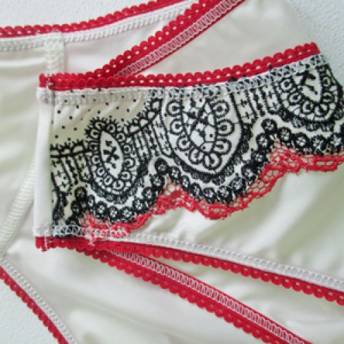 обработаны красными отделочными лентами в цвет края кружева. Ластовица на подкладке из хлопчатобумажного трикотажного полотна.