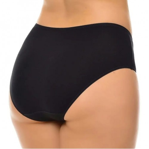 Трусы с высокой посадкой из вискозного трикотажного полотна с полиуретаном в черном и бежевом цветах. В белом цвете из хлопчатобумажного трикотажного полотна с полиуретаном. Все срезы трусов обработаны эластичной лентой. Ластовица на подкладке из хлопчатобумажного полотна.
